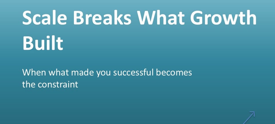 Most companies don't fail because they stop growing. They struggle because scale exposes what growth concealed. I've seen this pattern repeatedly - revenue expands, complexity multiplies, and the operating model that once worked starts to fracture. This article explores why scale is not an extension of growth, but a structural transition - and what leaders must redesign before performance erodes.